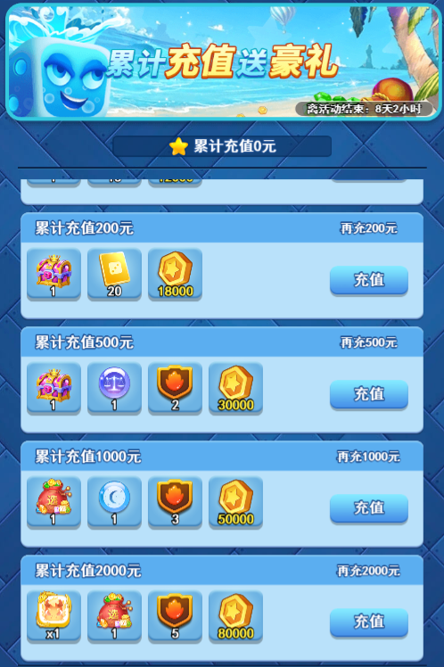 活动期间累计充值金额达到一定数量,即可领取传说骰子,熔炼值等稀有道具奖励。